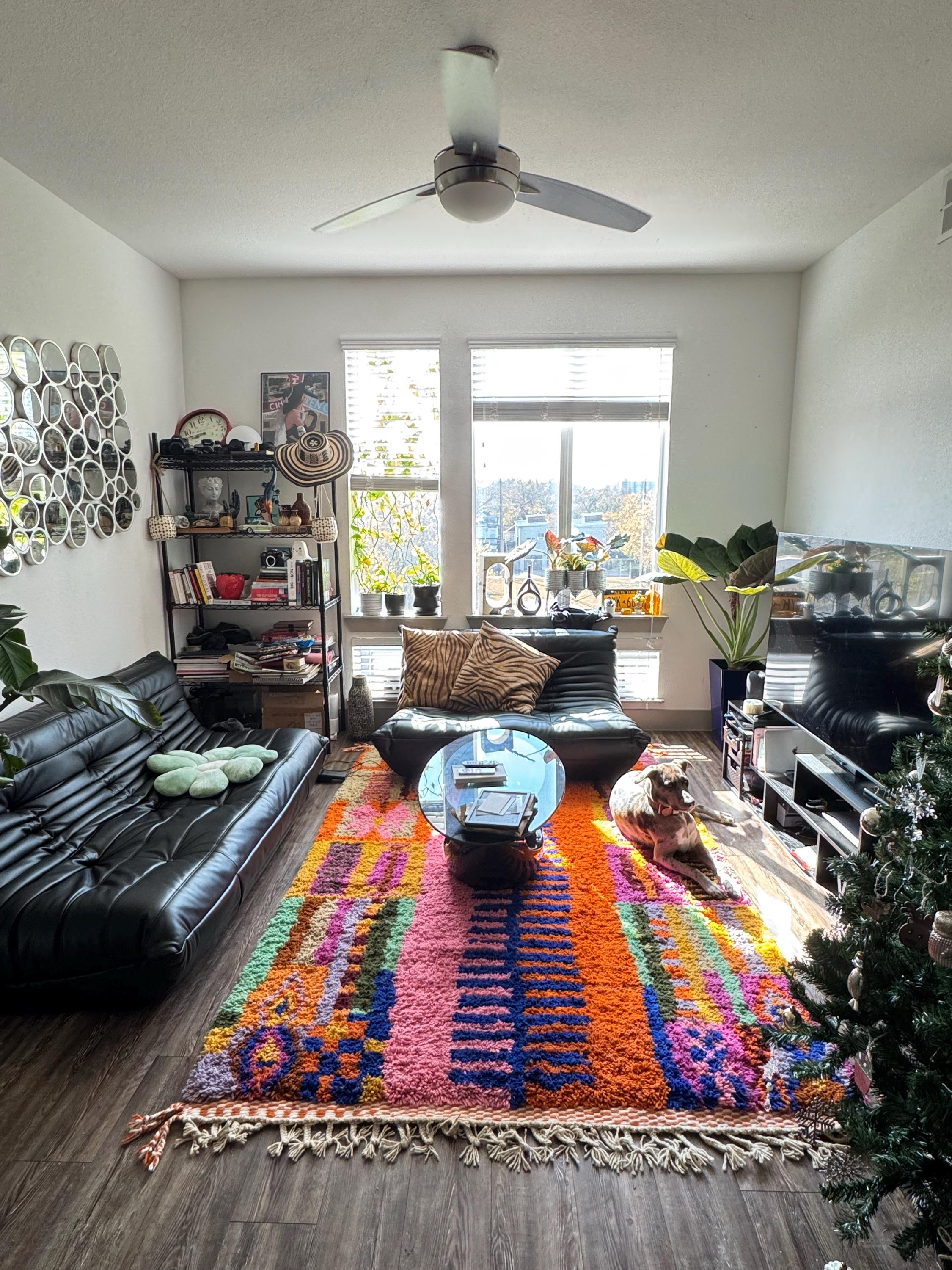 This is such a beautifully made rug and I’m so happy I purchased!! I HIGHLY recommend this shop to purchase your new rug. It’s such a great statement piece, gets a ton of compliments, and the quality is insanely good!! The seller was amazing at communicating shipping details. I even messaged them if they could wait on shipping and hold onto my rug till I got back home from vacation and they gladly did so. I’m so happy with my new rug!! 😍